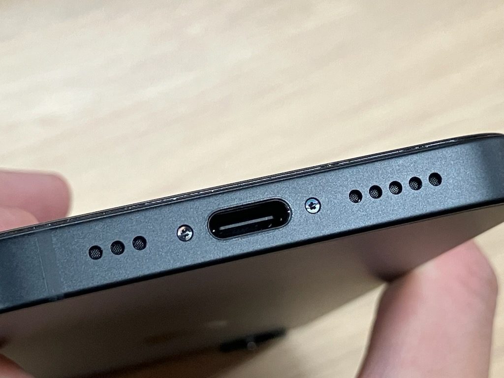 iPhoneの充電ケーブルを指す場所に2つの小さなねじがあります。